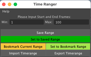 To run the tool, save the timeRanger.py file and icon to your scripts and icon folders. Then drag and drop the install file into Maya. It will automatically add it to your shelf, along with the double click option